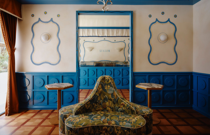 Plus qu’une pâtisserie, Season devient un théâtre des sens. Les clients y circulent comme dans un décor de film, passant d’un comptoir bleu céleste à un bar écarlate, de la lumière diffuse d’un matin à la profondeur d’un soir d’opéra. Chaque zone est pensée comme une expérience émotionnelle : on y déguste un dessert comme on contemple un tableau, avec lenteur et émerveillement.