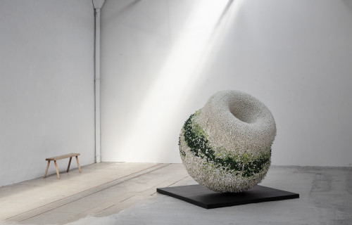 Les créatures fantastiques de Chimera font référence à la mythologie grecque et Isenzo revisite les chinoiseries traditionnelles avec des motifs abstraits, tandis qu’Ebru (photo) s’inspire de l’art turc du papier marbré. Cette série puise dans les figures iconographiques de la culture pour mieux en prolonger l’héritage. À l’aide de dessins figuratifs et de motifs évoquant des savoir-faire artisanaux venus de Mésopotamie, d’Amérique du Sud ou d’Asie centrale, « Istoria » rend hommage à la grande histoire de la tapisserie murale.