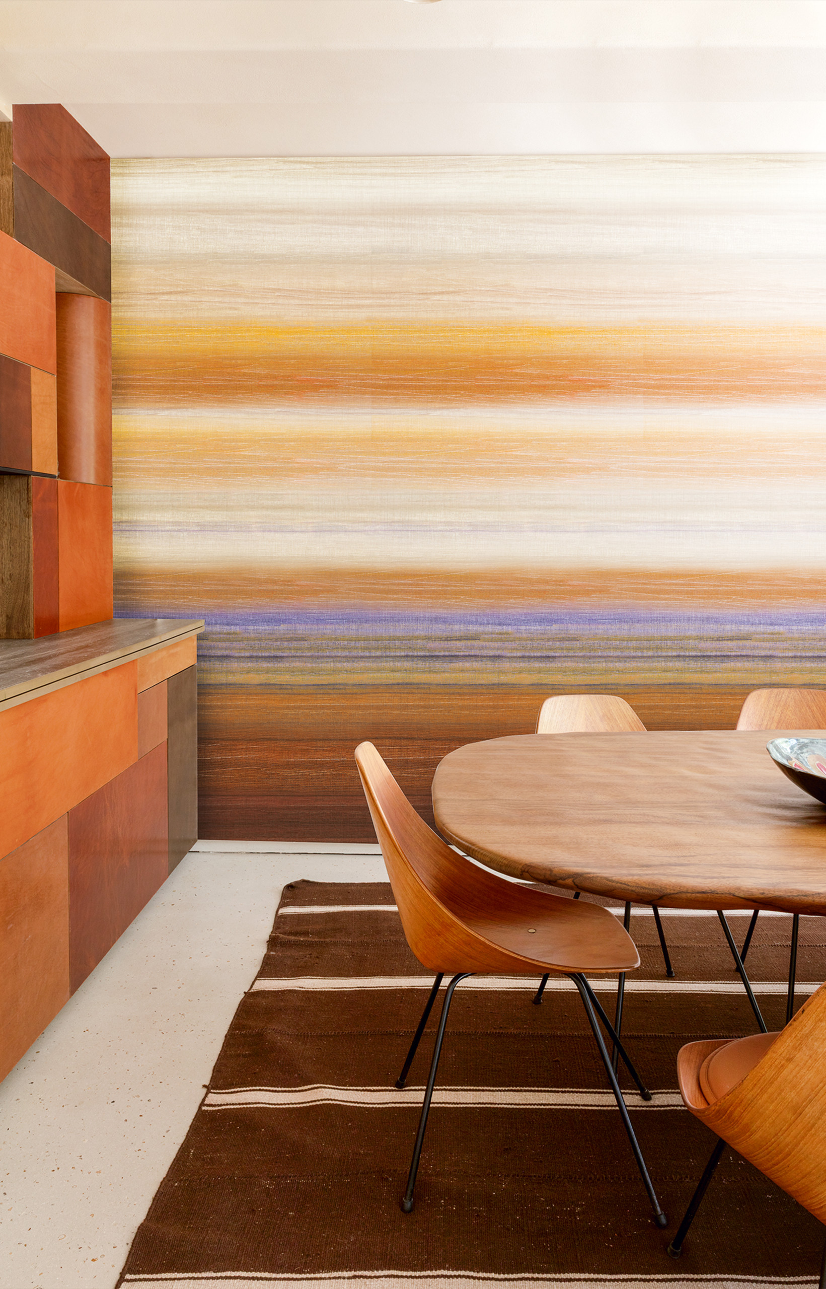 C’est aux confins de l’Inde qu’est née l’idée de la ligne de revêtements muraux « Serica ». Un mélange de soie et de sisal, matière première des artisans du pays et dont les motifs varient d’une région à l’autre. Créant un contraste saisissant entre les deux matériaux, l’un avec sa texture douce et gracieuse, l’autre, brut et robuste, le tissage joue sur cette ambiguïté pour apporter du volume.