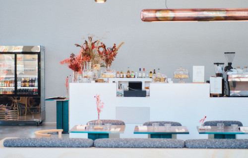 Le logo justement est l’œuvre d’Anne et Guillaume Bullat (agence Voiture 14), qui a conçu toute l’identité graphique. Elle est partie du mot GRAINES et a ensuite travaillé sur les vides typographiques pour retrouver des formes de semences. Ses formes ornent la papeterie, les menus, étiquettes des vins ainsi que tous les supports de communication, du site web à la boutique du restaurant.