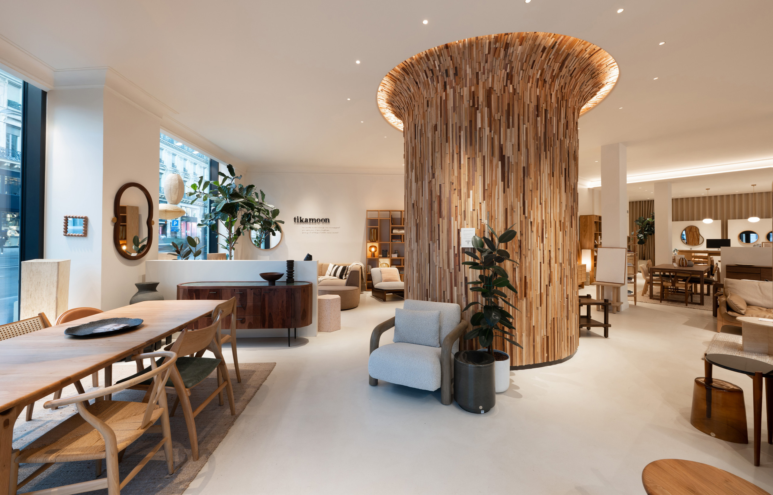 Mais Tikamoon ne cherche pas seulement à réduire son impact négatif de production, elle vise à produire un impact positif net sur l’environnement et la société. Au-delà de l’allongement de la durée de vie de ses produits, la marque développe depuis 2020 un programme « Développement Durable » avec le soutien du WWF France et du FSC. Certification des matières premières pour s’assurer de leur provenance et de leurs méthodes de production, mesures régulières de l’empreinte carbone de l’entreprise pour maîtriser les impacts de son activité sur le changement climatique, choix de reverser 1% de son chiffre d’affaires sur ses produits signature à des associations agréées « 1% for the Planet », création d’une éco-note sur chacun de ses meubles pour mesurer leur performance environnementale et permettre au consommateur d’acheter en pleine conscience : autant d’actions qui démontrent l’intention de Tikamoon d’inscrire son mobilier dans une démarche responsable et vertueuse.