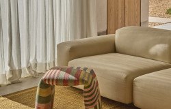 De son côté, « Sutra », dessinée par le studio de design 5.5, qui avait imaginé en 2017 du mobilier de plage pour La Grande-Motte, réunit cinq éléments modulables en aluminium thermolaqué (angle, pouf et module central). Une ligne ajourée réalisée à partir de lattes en teck, inspirée par les ganivelles, ces piquets de bois qui protègent les plages balayées par les vents. « L’objectif a été de répondre à des problématiques d’aménagement d’espaces à géométrie variable et de simplicité d’usage, sans complexifier le dessin », explique Jean-Sébastien Blanc, du studio 5.5. Ce n’est pas la première fois que le fabricant confie l’une de ses gammes à un bureau de design extérieur. Il y avait déjà eu « Kama », de Benjamin Ferriol, « Kube », d’Emmanuelle Legavre, et« Bienvenue », de l’agence Auvray.