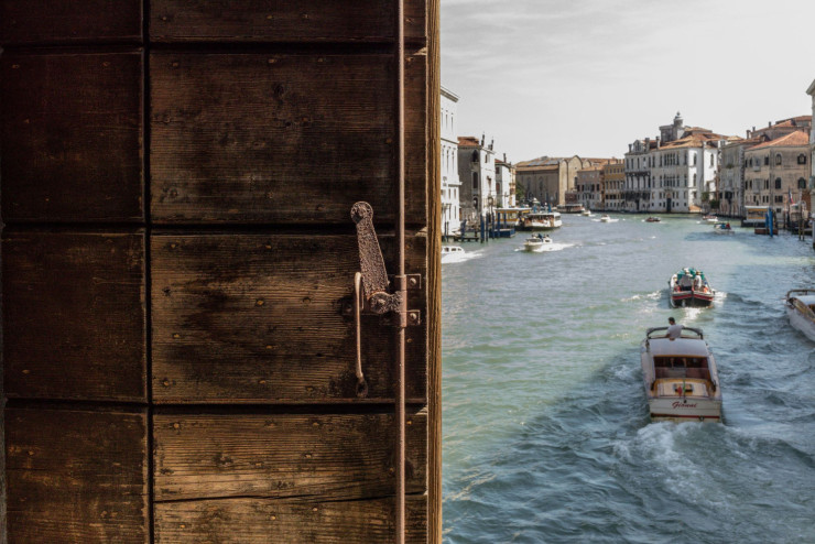 La 19e édition se tient actuellement dans la Cité des Doges, qui vit par ailleurs au rythme des grues. La lecture de la skyline s’en trouve bousculée. Dômes, clochers et flèches métalliques des engins fabriquent un paysage hybride où le patrimoine dialogue avec les signes d’un avenir en chantier. Des travaux sont en cours, comme la construction du stade de Bosco dello Sport, mais aussi différentes tentatives pour endiguer la montée des eaux en surélevant les sols dans les quartiers les plus touchés. Même la célèbre place Saint-Marc résonne aujourd’hui sous les marteaux-piqueurs avec la rénovation de ses pavés.